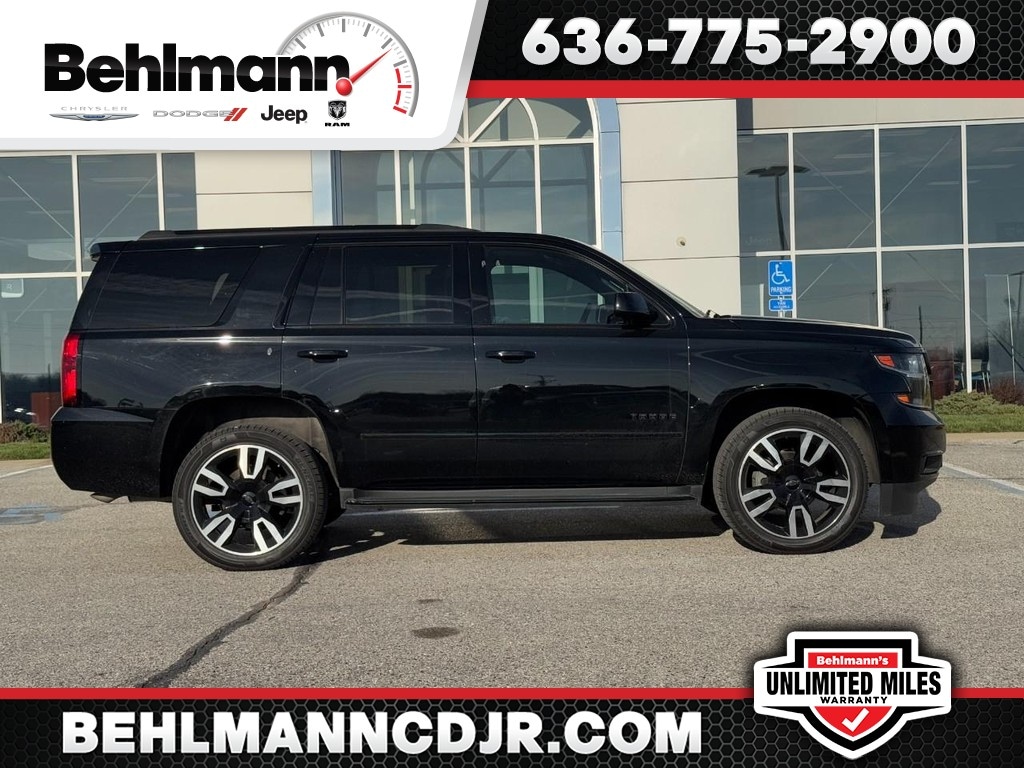 CALL (636) 775-2900 FOR MORE INFORMATION, CLEAN VEHICLE HISTORY NO ACCIDENTS, LOCAL TRADE, 2ND ROW CAPTAIN CHAIRS, 3RD ROW SEVEN PASSENGER, REAR BACK UP CAMERA, REAR PARKING SENSORS, HEATED LEATHER SEATS, HEATED STEERING WHEEL, CRUISE CONTROL, AWD / 4 WHEEL DRIVE, POWER REAR LIFTGATE, ALLOY WHEELS, Tahoe Premier, 4D Sport Utility, EcoTec3 6.2L V8, 10-Speed Automatic with Overdrive, 4WD, Black, Black Leather. Enhanced Driver Alert Package (Y86) (Forward Collision Alert, IntelliBeam Headlamps, Lane Keep Assist w/Lane Departure Warning, and Low Speed Forward Automatic Braking), License Plate Front Mounting Package, Magnetic Ride Control Suspension Package, Preferred Equipment Group 1LZ (1st & 2nd Row Color-Keyed Carpeted Floor Mats, 3rd Row 60/40 Power Fold Split-Bench, 4-Wheel Antilock Disc Brakes w/Brake Assist, 5 12-Volt Auxiliary Power Outlets, Auto-Dimming Inside Rear-View Mirror, Black Assist Steps w/Chrome Accent Strip, Bose Centerpoint Premium 10-Speaker Surround Sound, Cargo Net, Color-Keyed Carpeting Floor Covering, Driver Inboard & Front Passenger Airbags, Electronic Cruise Control w/Set & Resume Speed, Floor Console, Fog Lamps, Front & Rear Park Assist, Front Passenger 6-Way Power Seat Adjuster, Hands Free Power Liftgate, Heated & Ventilated Driver & Front Passenger Seats, Heated 2nd Row Seats, Heated Leather Wrapped Steering Wheel, Lane Change Alert w/Side Blind Zone Alert, Memory Settings, OnStar Basic Plan For 5 Years, Passive Entry System, Power Release 2nd Row Bucket Seats, Power Tilt & Telescopic Steering Column, Power-Adjustable Accelerator & Brake Pedals, Power-Folding Heated Outside Mirrors, Push Button Keyless Start, Rear Cross-Traffic Alert, Remote Keyless Entry, Remote Vehicle Start, Roof-Mounted Luggage Rack Side Rails, SiriusXM NavTraffic, SiriusXM Satellite Radio, Universal Home Remote, and Wireless Charging), RST 6.2L Performance Edition (170 Amp Alternator and Integrated Trailer Brake Controller), RST Edition (Black Beltline Moldings, Black Mirror Caps, Black Roof Rails, Body-Color Door Handles & Headlamp Accents, Front & Rear Black Bowties, Unique Gloss Black Sport Grille, and Wheels: 22" x 9" Gloss Black Aluminum), Sun, Entertainment & Destinations Package (Power Sunroof and Rear Seat Blu-Ray/DVD Entertainment System), Tahoe Premier, 4D Sport Utility, EcoTec3 6.2L V8, 10-Speed Automatic with Overdrive, 4WD, Black, Black Leather, 10 Speakers, 3rd row seats: split-bench, 4-Wheel Disc Brakes, ABS brakes, Adaptive suspension, Adjustable pedals, Air Conditioning, Alloy wheels, AM/FM radio: SiriusXM, Apple CarPlay/Android Auto, Auto High-beam Headlights, Auto-dimming door mirrors, Auto-dimming Rear-View mirror, Automatic temperature control, Bluetooth® For Phone, Bodyside moldings, Brake assist, Bumpers: body-color, CD player, Compass, Delay-off headlights, Driver door bin, Driver vanity mirror, Dual front impact airbags, Dual front side impact airbags, Electronic Stability Control, Emergency communication system: OnStar Guidance, Enhanced Driver Information Center, Exterior Parking Camera Rear, Front anti-roll bar, Front Bucket Seats, Front Center Armrest, Front dual zone A/C, Front fog lights, Front Heated Reclining Bucket Seats, Front reading lights, Front wheel independent suspension, Fully automatic headlights, Garage door transmitter, HD Radio, Head-Up Display, Heated door mirrors, Heated front seats, Heated rear seats, Heated steering wheel, High-Intensity Discharge Headlights, Illuminated entry, Low tire pressure warning, Memory seat, Navigation System, Occupant sensing airbag, Outside temperature display, Overhead airbag, Overhead console, Panic alarm, Passenger door bin, Passenger vanity mirror, Pedal memory, Perforated Leather-Appointed Seat Trim, Power door mirrors, Power driver seat, Power Liftgate, Power passenger seat, Power steering, Power windows, Premium audio system: Chevrolet MyLink, Radio: Chevrolet MyLink w/Nav/AM/FM Stereo, Rain sensing wipers, Rear air conditioning, Rear anti-roll Third Party sources are involved in the posting of incentives and sale prices. See salesperson for details and verification.