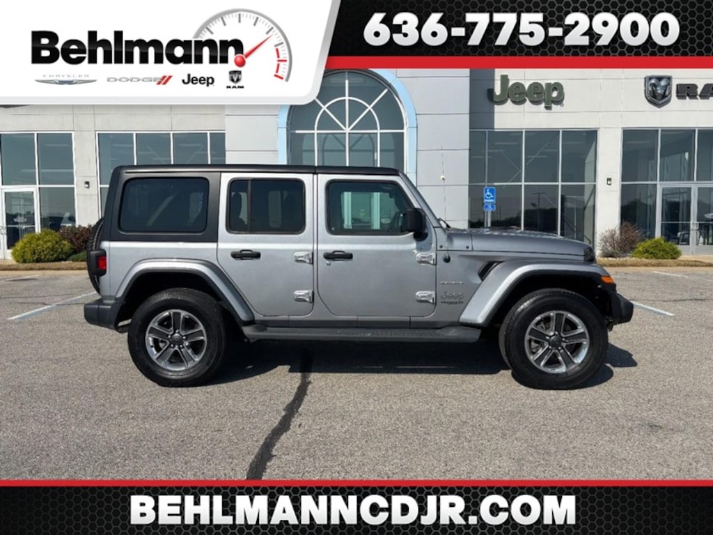 CALL (636) 775-2900 FOR MORE INFORMATION, LOCAL TRADE, BLUETOOTH, REAR BACK UP CAMERA, APPLE CARPLAY / ANDROID AUTO, HEATED STEERING WHEEL, CRUISE CONTROL, AWD / 4 WHEEL DRIVE, REMOTE VEHICLE START, ALLOY WHEELS, HEATED FRONT SEATS, Wrangler Unlimited Sahara, 4D Sport Utility, 2.0L I4 DOHC, 8-Speed Automatic, 4WD, Billet Silver Metallic Clearcoat, Black Leather, 1-Year SiriusXM Guardian Trial, 240 Amp Alternator, 4G LTE Wi-Fi Hot Spot, 5-Year SiriusXM Traffic Service, 5-Year SiriusXM Travel Link Service, 7 & 4 Pin Wiring Harness, 700 Amp Maintenance Free Battery, 8.4" Radio & Premium Audio Group, 8.4" Touchscreen Display, Auto-Dimming Rear-View Mirror, Auxiliary Switches, Class II Receiver Hitch, Cold Weather Group, Emergency/Assistance Call, For Details, Visit DriveUconnect.ca, GPS Navigation, HD Radio, Heated Front Seats, Heated Steering Wheel, Quick Order Package 28G, Radio: Uconnect 4C Nav w/8.4" Display, SiriusXM Traffic Plus, SiriusXM Travel Link, Trailer Tow & HD Electrical Group. 8.4" Radio & Premium Audio Group (1-Year SiriusXM Guardian Trial, 4G LTE Wi-Fi Hot Spot, 5-Year SiriusXM Traffic Service, 5-Year SiriusXM Travel Link Service, 8.4" Touchscreen Display, Auto-Dimming Rear-View Mirror, Emergency/Assistance Call, For Details, Visit DriveUconnect.ca, GPS Navigation, HD Radio, Radio: Uconnect 4C Nav w/8.4" Display, SiriusXM Traffic Plus, and SiriusXM Travel Link), Cold Weather Group (Heated Front Seats and Heated Steering Wheel), Quick Order Package 28G, Trailer Tow & HD Electrical Group (240 Amp Alternator, 7 & 4 Pin Wiring Harness, 700 Amp Maintenance Free Battery, Auxiliary Switches, and Class II Receiver Hitch), Wrangler Unlimited Sahara, 4D Sport Utility, 2.0L I4 DOHC, 8-Speed Automatic, 4WD, Billet Silver Metallic Clearcoat, Black Leather, 3.45 Rear Axle Ratio, 4-Wheel Disc Brakes, 8 Speakers, ABS brakes, Air Conditioning, Alloy wheels, Alpine Premium Audio System, AM/FM radio: SiriusXM, Apple CarPlay/Android Auto, Automatic temperature control, Black 3-Piece Hard Top, Brake assist, Cloth Low-Back Bucket Seats, Compass, Delay-off headlights, Driver door bin, Driver vanity mirror, Dual front impact airbags, Dual front side impact airbags, Electronic Stability Control, Freedom Panel Storage Bag, Front anti-roll bar, Front Bucket Seats, Front Center Armrest w/Storage, Front dual zone A/C, Front fog lights, Front reading lights, Fully automatic headlights, Garage door transmitter, Heated door mirrors, Heavy Duty Suspension w/Gas Shocks, Illuminated entry, Integrated roll-over protection, Leather steering wheel, Low tire pressure warning, Manufacturer's Statement of Origin (DISC), No Soft Top, Non-Lock Fuel Cap w/o Discriminator, Occupant sensing airbag, Outside temperature display, Panic alarm, ParkView Rear Back-Up Camera, Passenger door bin, Passenger vanity mirror, Power door mirrors, Power steering, Power windows, Radio data system, Radio: Uconnect 4 w/7" Display, Rear anti-roll bar, Rear reading lights, Rear Window Defroster, Rear Window Wiper/Washer, Remote keyless entry, Remote Start System, Security system, Speed control, Split folding rear seat, Steering wheel mounted audio controls, Tachometer, Telescoping steering wheel, Tilt steering wheel, Traction control, Trip computer, Variably intermittent wipers, Voltmeter, and Wheels: 18" x 7.5" Polished w/Gray SpokeS. Odometer is 33693 miles below market average! Priced below KBB Fair Purchase Price! Third Party sources are involved in the posting of incentives and sale prices. See salesperson for details and verification.